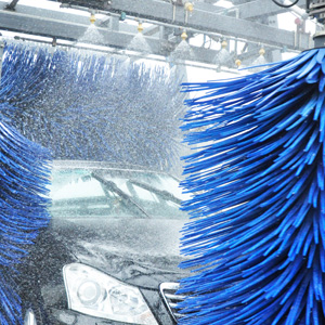 進口意大利塑玻絲輪刷,根據光電開關感應判斷車身位置,輪刷啟動至輪轂位置,開始清洗,正反旋轉刷洗輪轂,電腦洗車機全程電腦全自動控制輪刷伸縮。